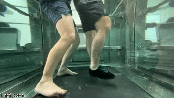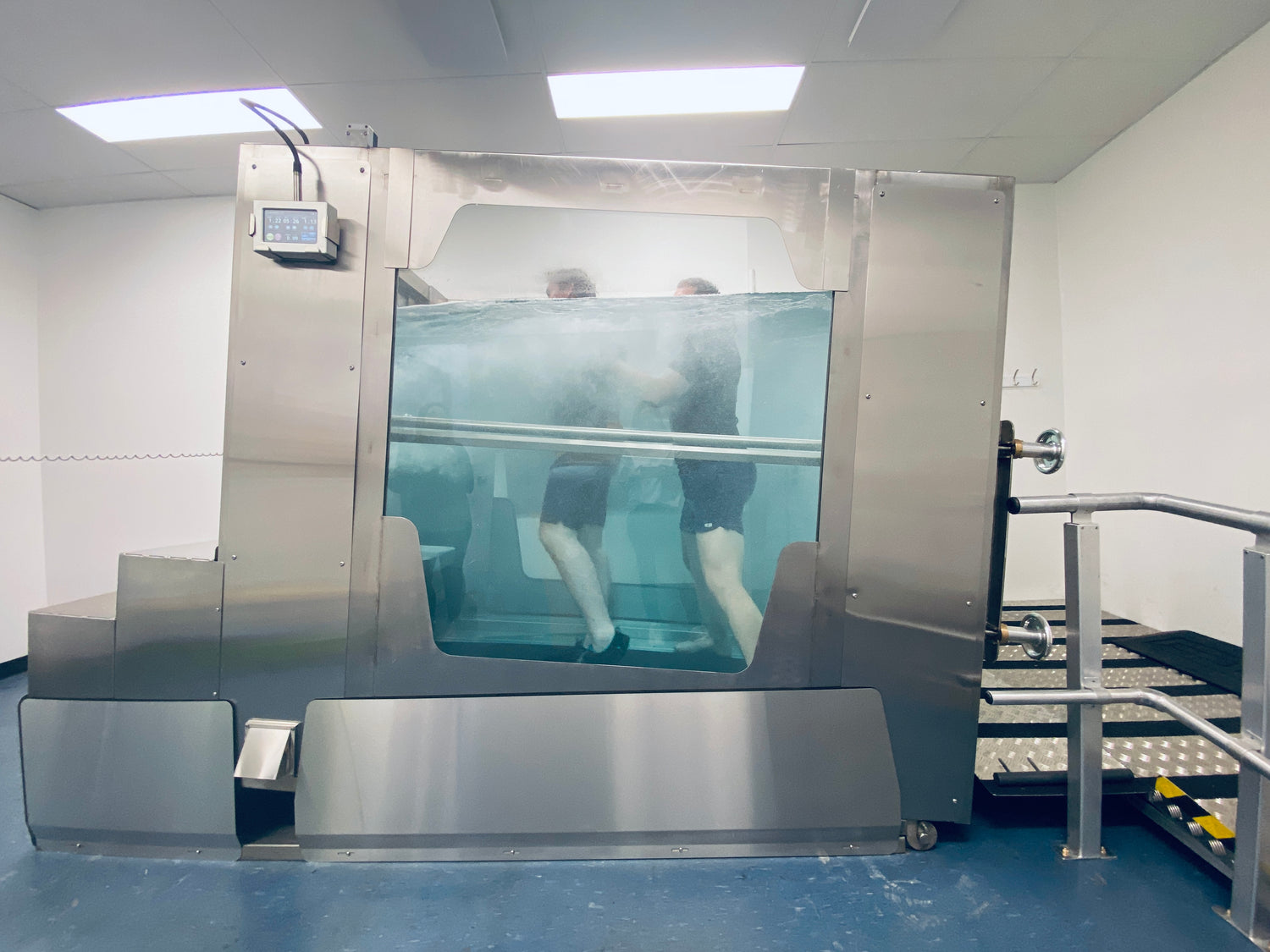 The hydrotank provides unique opportunities for hydrotherapy in a private setting. It has an inbuilt treadmill and additional incline settings to create more versatility, advancing therapy options with your improvements. Featured here on an incline.
